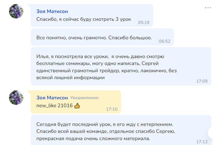 Я очень давно смотрю бесплатные семинары, могу одно написать, Сергей единственный грамотный трейдер, кратно, лаконично, без всякой лишней информации